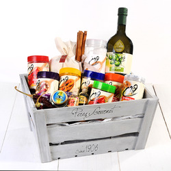 מחפשים מתנה שמכילה את כל הטוב שבעולם? פתחו את מארז הקרטון האלגנטי עם ידית הנשיאה ותמצאו בו את כל מה שצריך לתבשיל ולסלט: שמן זית כתית מעולה 250 מ"ל שמגיע אליכם ישירות מבית הבד שלנו ומגוון תבלינים לבחירתכם, שיהפכו כל ארוחה, לארוחת בריאות.