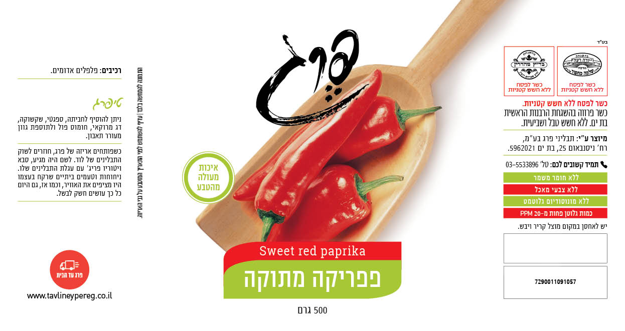 לקוחות יקרים! בעקבות עומס חריג של הזמנות באתר ניתן לבצע הזמנות באיסוף עצמי בלבד, ככל שיתאפשר נפתח את האתר שוב למשלוחים. עמכם הסליחה!