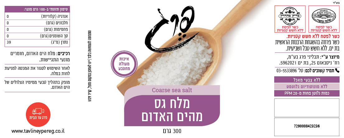 מלח ים משובח המיובש בשמש בייבוש טבעי ללא הוספת כימיקלים. המלח של פרג מחדד ומבליט את הטעם והייחוד של כל מנה.