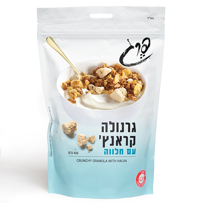 גרנולה חלבה קריספית במיוחד בשילוב של חתיכות חלווה שוקו וניל, .