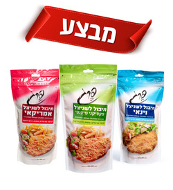 הוראות הכנה: 1. לטבול בביצה טרופה. 2. להעביר לכלי עם תיבול שניצל, לצפות היטב מכל הצדדים. . לטגן בשמן עד לקבלת גוון זהוב. 3. אין צורך להוסיף תבלינים או מלח. 4. להגיש חם.